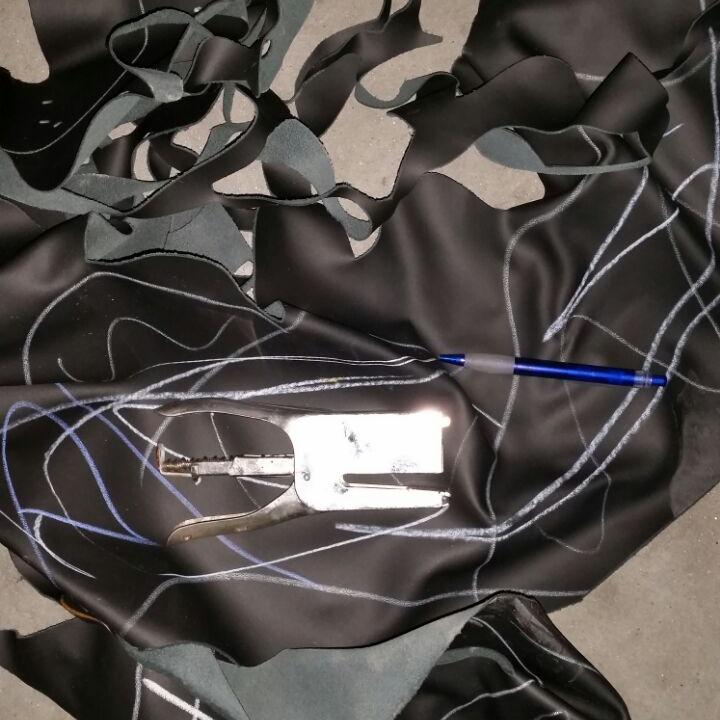 Lote constituído por retalho de peles de volante auto de vários acabamentos várias cores e texturas, 90% é preto.