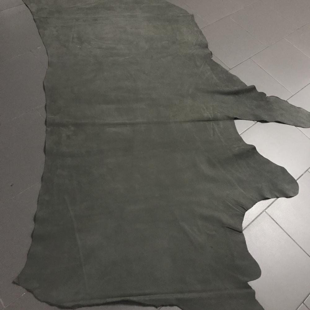 Pele de bovino nobuck gravado cor verde militar.